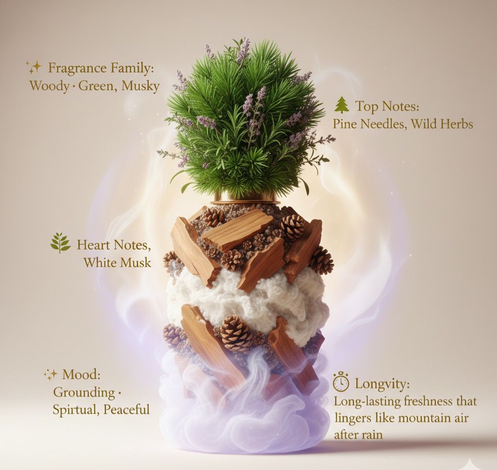 🌲 Top Notes: Pine Needles, Wild Herbs